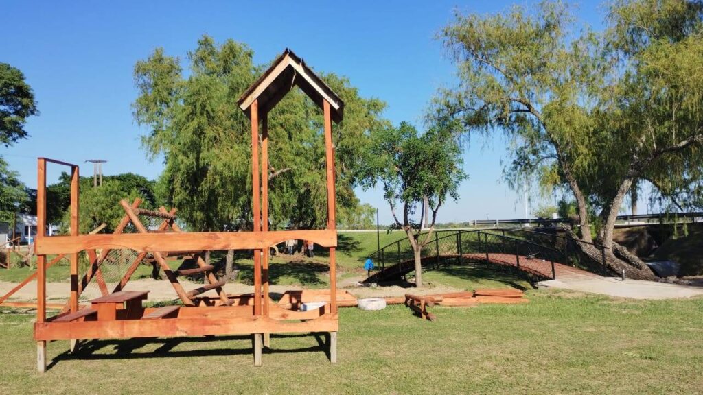 Se trata de un lugar para el disfrute de las infancias, con diversos juegos infantiles, luminarias y un puente.
