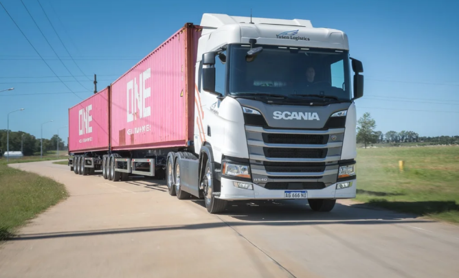 A partir de un trabajo conjunto entre Yusen Logistics, Scania, Vulcano y Toyota, se realizó el primer transporte de carga con un bitren de 30,25 metros de largo entre el Puerto de Buenos Aires y Zárate.