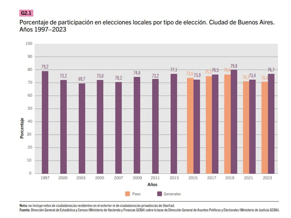 La última vez que la participación fue tan baja en una elección general porteña fue en 2003, cuando alcanzó el 69,7%.