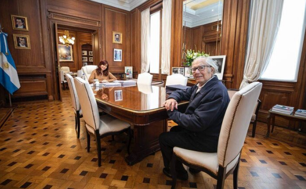 La ex presidenta Cristina Kirchner mantuvo una reunión este jueves con el Premio Nobel de la Paz Adolfo Pérez Esquivel luego del fallo de la Corte Suprema que confirmó la condena en su contra a 6 años de prisión e inhabilitación para ejercer cargos públicos.