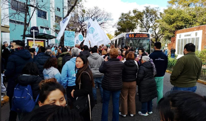 Los trabajadores del hospital llevaron a cabo ayer una asamblea en la vereda de la institución, sobre la avenida Patricias Argentinas, frente al Parque Centenario.