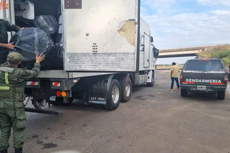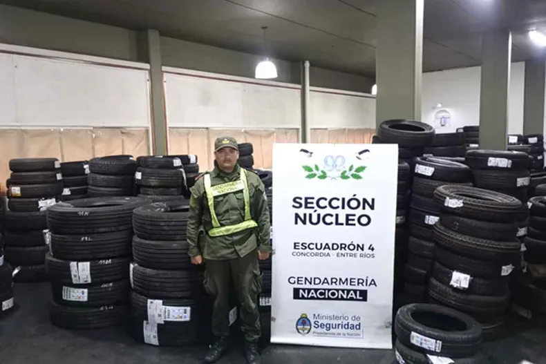 El personal de Gendarmería interceptó un camión que trasladaba gran cantidad de neumáticos sin el aval aduanero correspondiente, se trata de gomas de automóvil de origen chino.