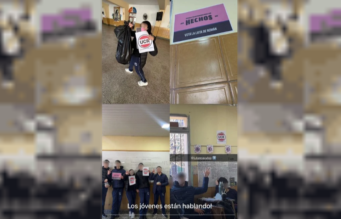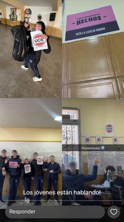 En las imágenes difundidas se ven a los jóvenes mostrando afiches oficiales de Hechos que llevan la frase «votá la lista de Román» y otros con el logo de la Unión Cívica Radical, partido que gobierna Rojas desde el 2015 con varias sospechas de presunta corrupción, principalmente, con la frustrada concreción de un Parque Industrial en la gestión de su antecesor, el diputado provincial Claudio Rossi.