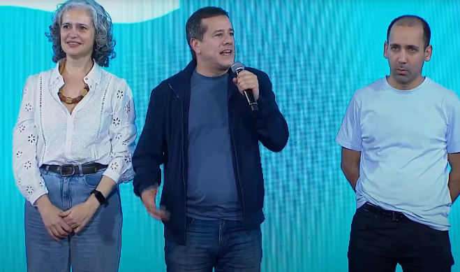 Además de Recalde, Fuerza Patria lleva en CABA a como postulante a diputado nacional Itai Hagman, quien también tomó parte en el acto que se realizó esta tarde en la sede de la Universidad de Buenos Aires.
