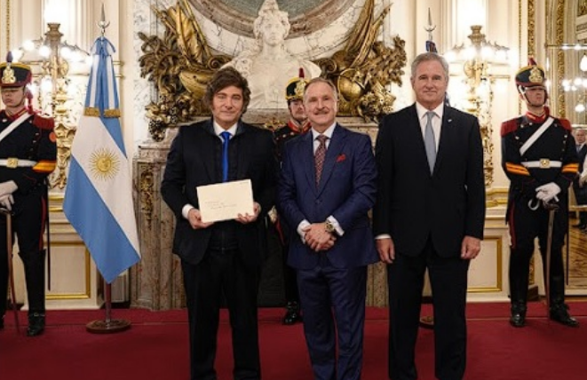 El presidente Javier Milei recibió este martes en su despacho de Casa Rosada al nuevo embajador de los Estados Unidos en la Argentina, Peter Lamelas, quien previamente le había entregado las cartas credenciales, trámite que dio inicio su misión formalmente.
