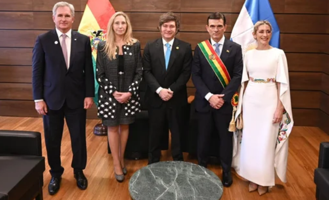 El mandatario argentino Javier Milei se reunió de manera informal este sábado con el presidente electo, Rodrigo Paz Pereira, en La Paz, donde ambos coincidieron en avanzar hacia una agenda común, la reunión se realizó en el marco de la asunción presidencial del jefe de Estado boliviano.