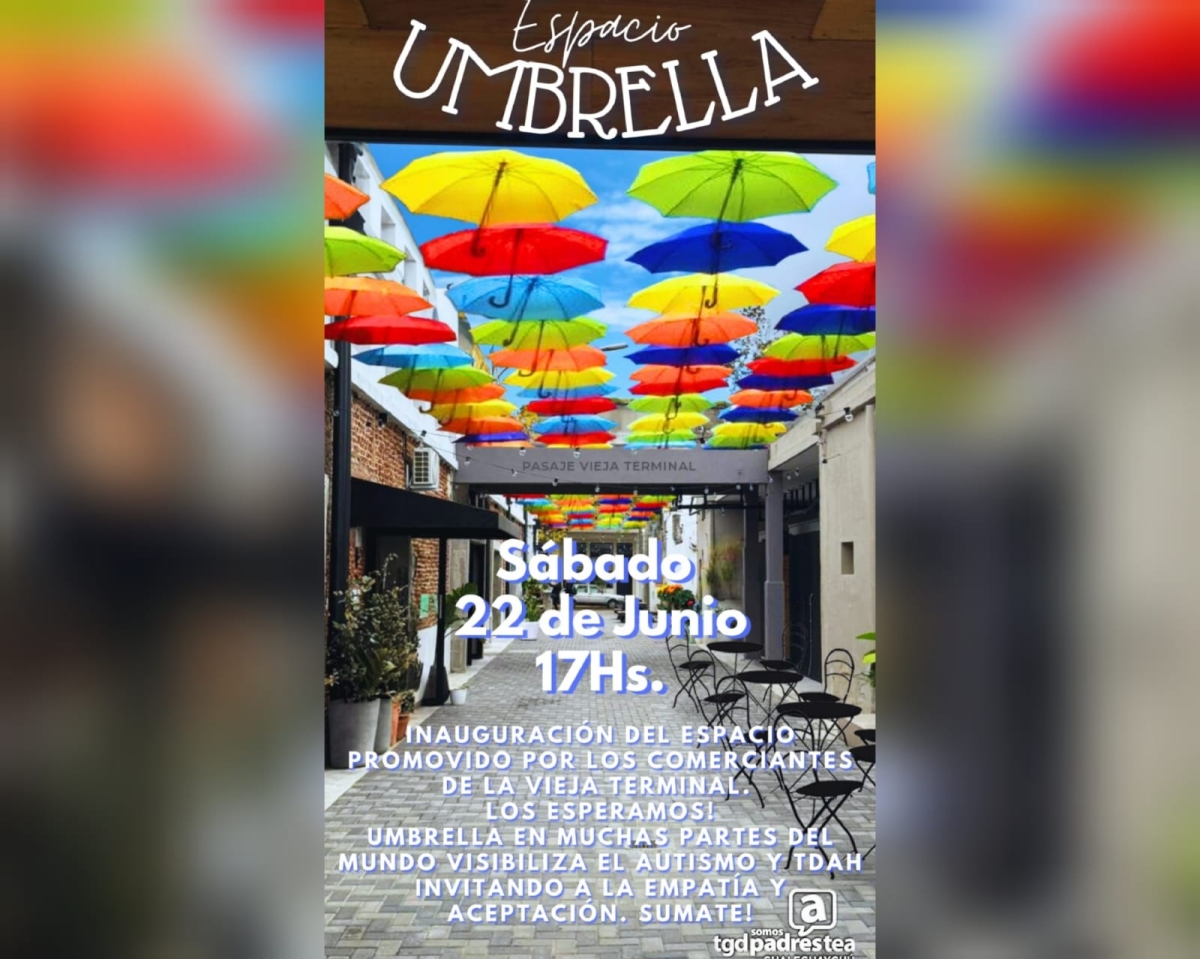 Umbrella consiste en colocar paraguas a la vista pública, a modo de concientización sobre el trastorno de déficit de atención y autismo. “Eso se empezó a replicar en todas las ciudades del mundo y quisimos plasmarlo en el espacio nuestro, para generar no solo concientización, sino darle a Gualeguaychú un espacio lindo y colorido para que pueda disfrutar la gente que venga”, detalló.