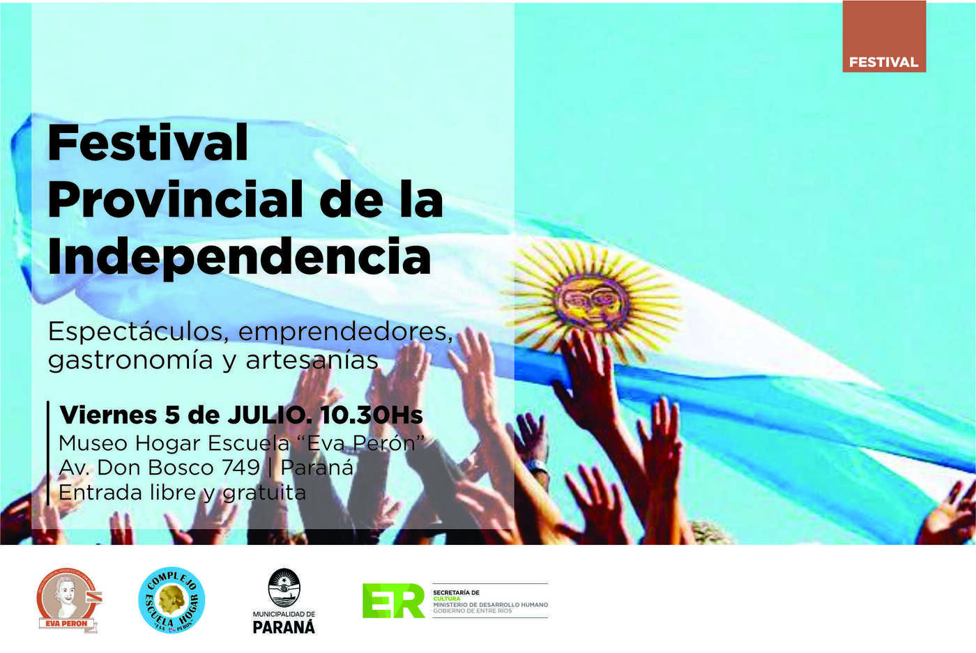 Ante la proximidad de un nuevo aniversario de la declaración de la Independencia, la Secretaría de Cultura de Entre Ríos, junto al Museo Provincial Hogar Escuela Eva Perón y al complejo Hogar Escuela que reúne una serie de instituciones, organiza una celebración que se extenderá buena parte del día del próximo viernes, 5 de julio.
