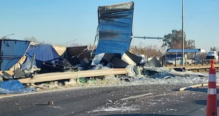 Este fatal accidente provoca serias complicaciones en el tráfico, ya que hay un importante operativo de seguridad en el lugar. El vidrio de la mercadería que trasladaba el camión de carga quedó desparramada en el asfalto.
