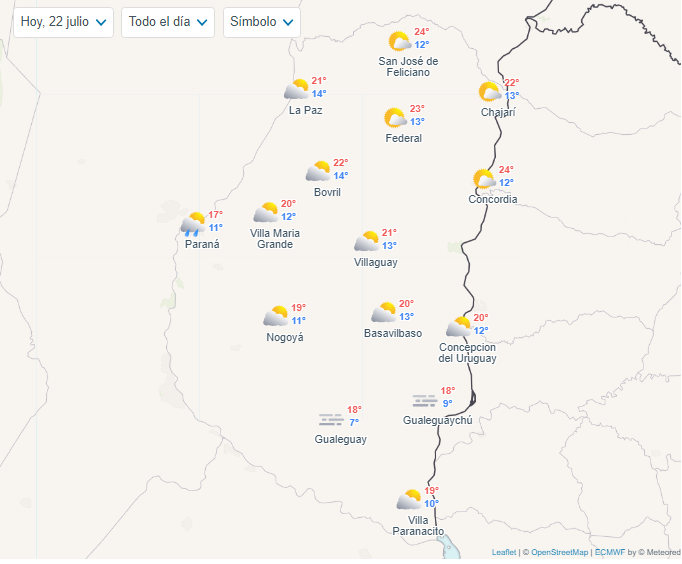 Clima en las principales ciudades entrerrianas