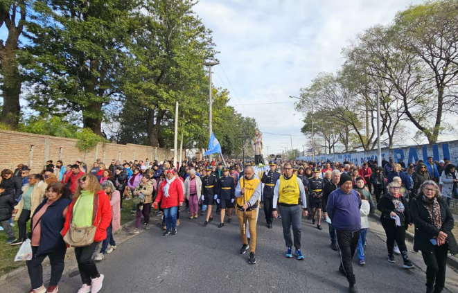 Los fieles que salieron desde la iglesia que lleva el nombre del Santo se dirigieron hacia la Escuela Hogar, donde estaba previsto el retorno a la parroquia para la misa.
