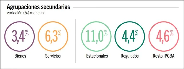 Durante el mes de julio los Bienes registraron una suba de 3,4%, por debajo de los Servicios que aumentaron 6,3%: