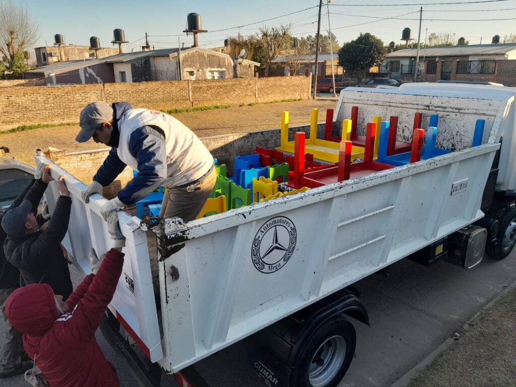 Personal Municipal trabajó en el traslado del nuevo equipamiento destinado al Centro de Desarrollo Infantil, ubicado en barrio Nuestra Señora de Guadalupe – 120 viviendas.