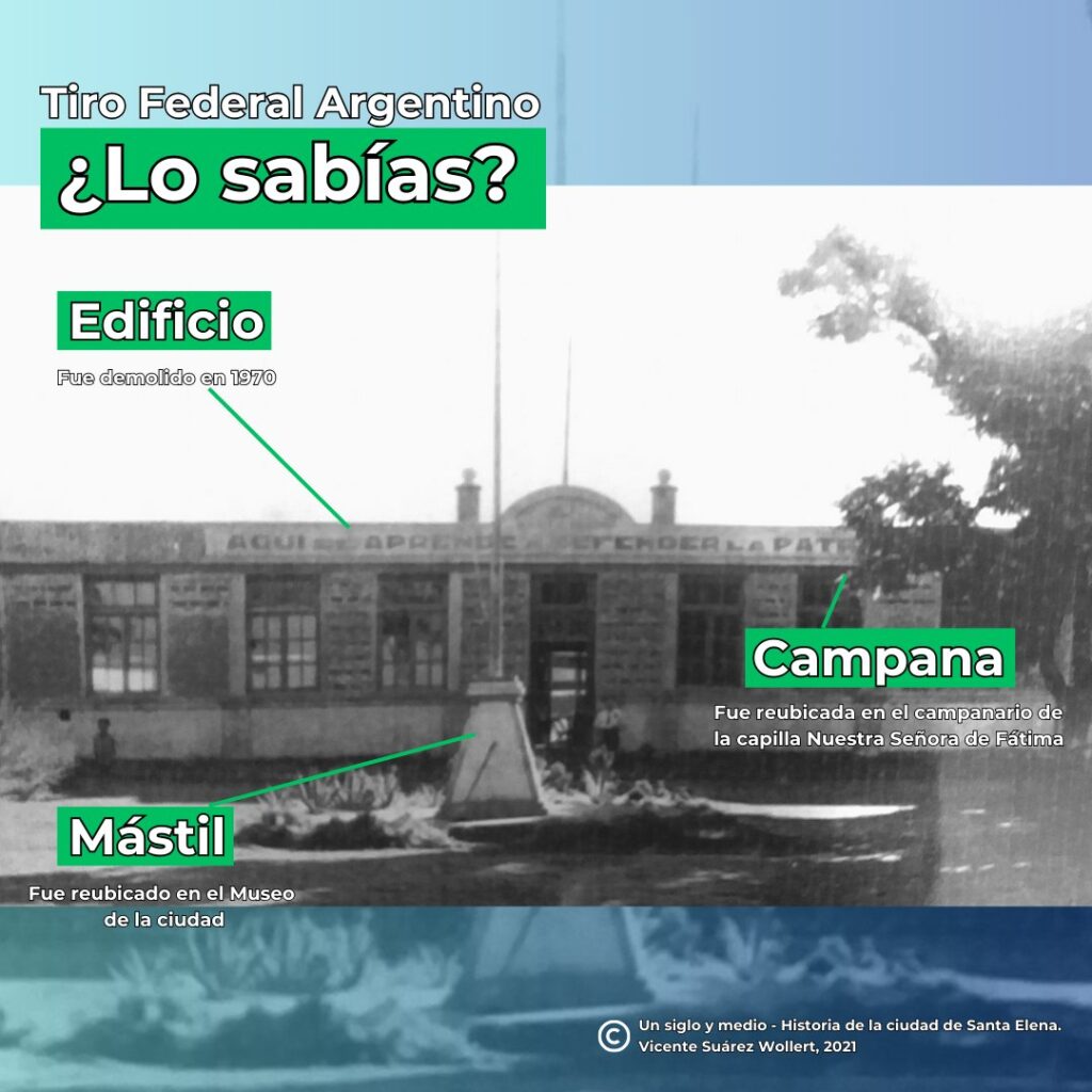 En septiembre de 1922 se funda el Tiro Federal Argentino, en las actuales inmediaciones de Avenida San Martin y calle Buenos Aires, de la ciudad de Santa Elena.