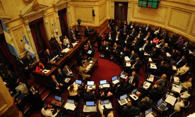 La ley fue sancionada por un mosaico de fuerzas políticas de la oposición en la que confluyeron radicales, kirchneristas, fuerzas provinciales y otros bloques menores, que impusieron su criterio por 57 votos a favor, tan sólo 10 en contra y una abstención. El débil rechazo a la iniciativa fue aportado por siete libertarios y tres senadores de Pro, bancada que votó dividida, ya que otros tres lo hicieron a favor y la pampeana Victoria Huala se abstuvo.